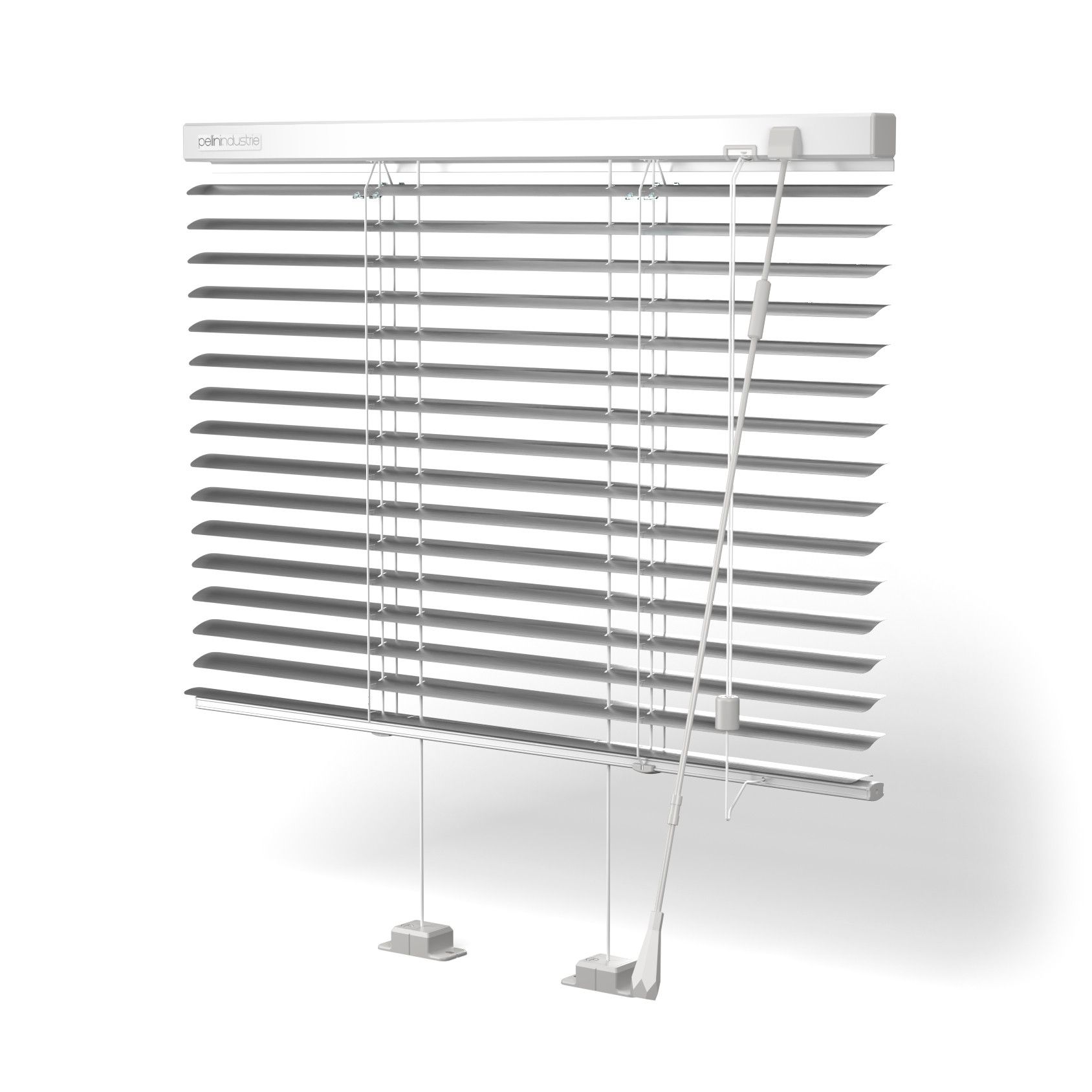 La tenda si aziona mediante un’asta per orientare le lamelle e mediante una corda per il sollevamento; è possibile bloccare la tenda in qualsiasi posizione intermedia grazie ad un fermacorda con ingranaggio interno al cassonetto. Il sistema di guida è realizzato con cavi in acciaio ad alto scorrimento, tenuti in tensione da appositi tiranti guida registrabili con apposita vite.